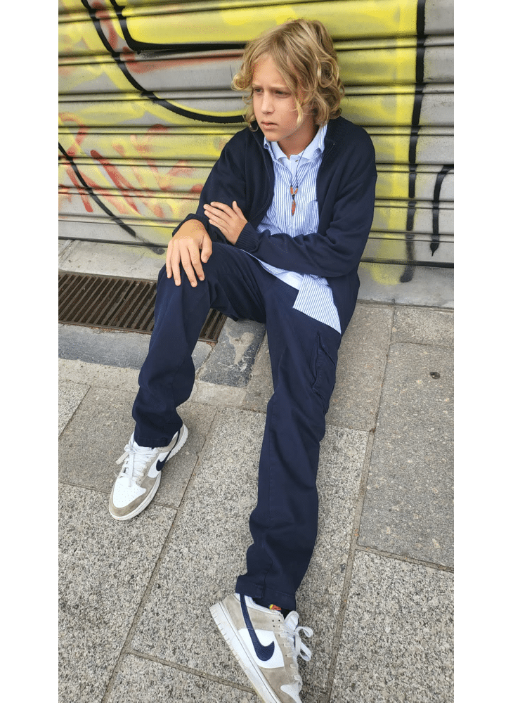 Donkerblauwe tricot vest met rits in unisex model voor leerlingen van het Sint-Ursula-Instituut Onze-Lieve-Vrouw-Waver.
